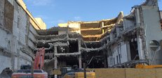 PORR subsidiary Prajo & Co started the demolition of an Interspar supermarket in the centre of Vienna’s Floridsdorf district in February 2015. The building featured seven storeys of which the three lower ones were used by the Interspar supermarket and as car parks. The lower storeys had been partially built in an open, column-supported construction method and the sides of the building were equipped with fire walls.